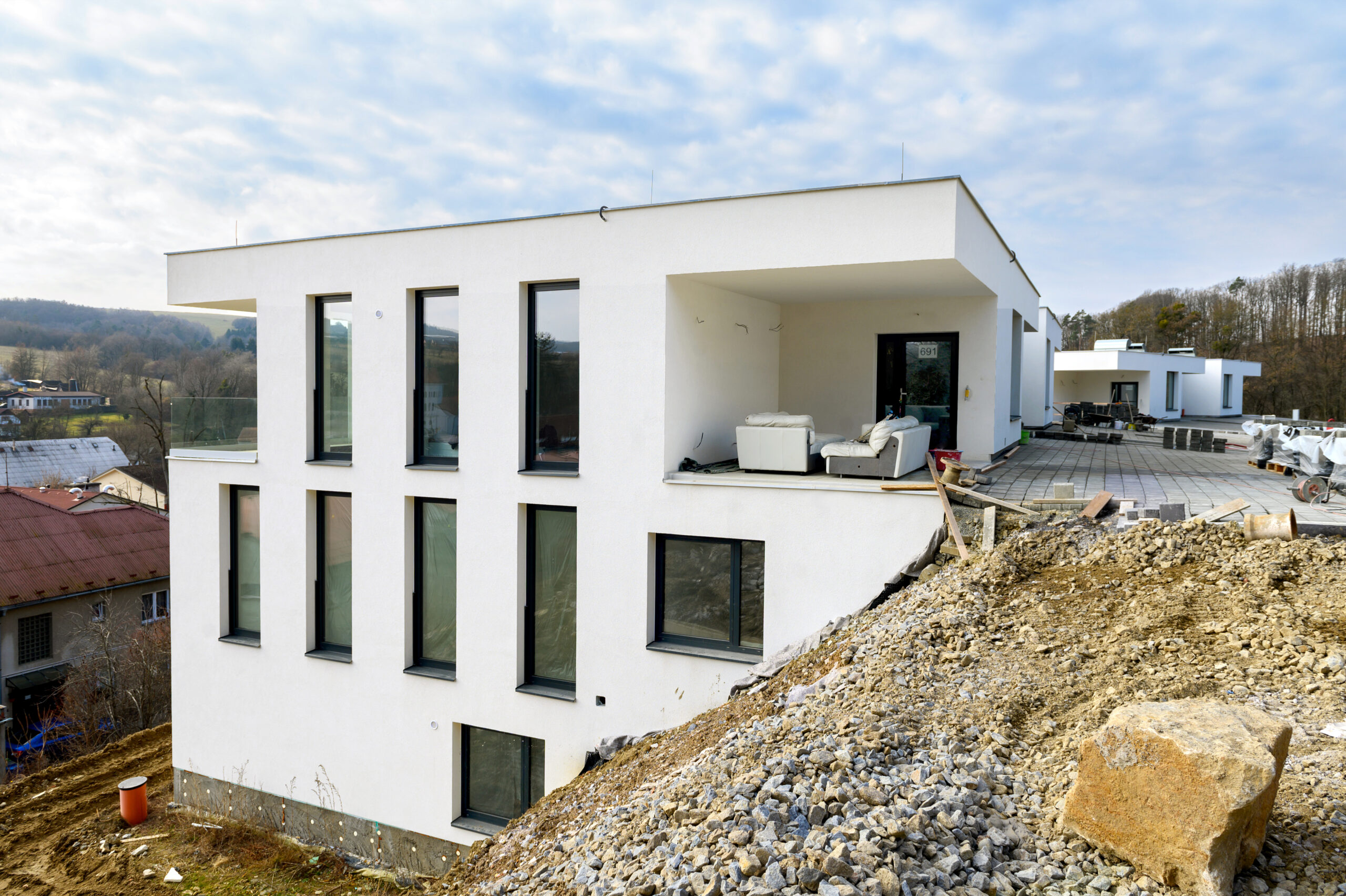 Jižní orientace bytů zajišťuje maximální prosvětlení a proslunění bytových jednotek s výhledem na obec a do krajiny.